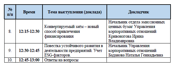 09.09.2022 с 08:00 до 11:00 по московскому времени запланировано мероприятие «Актуальные вопросы эмиссии ценных бумаг»