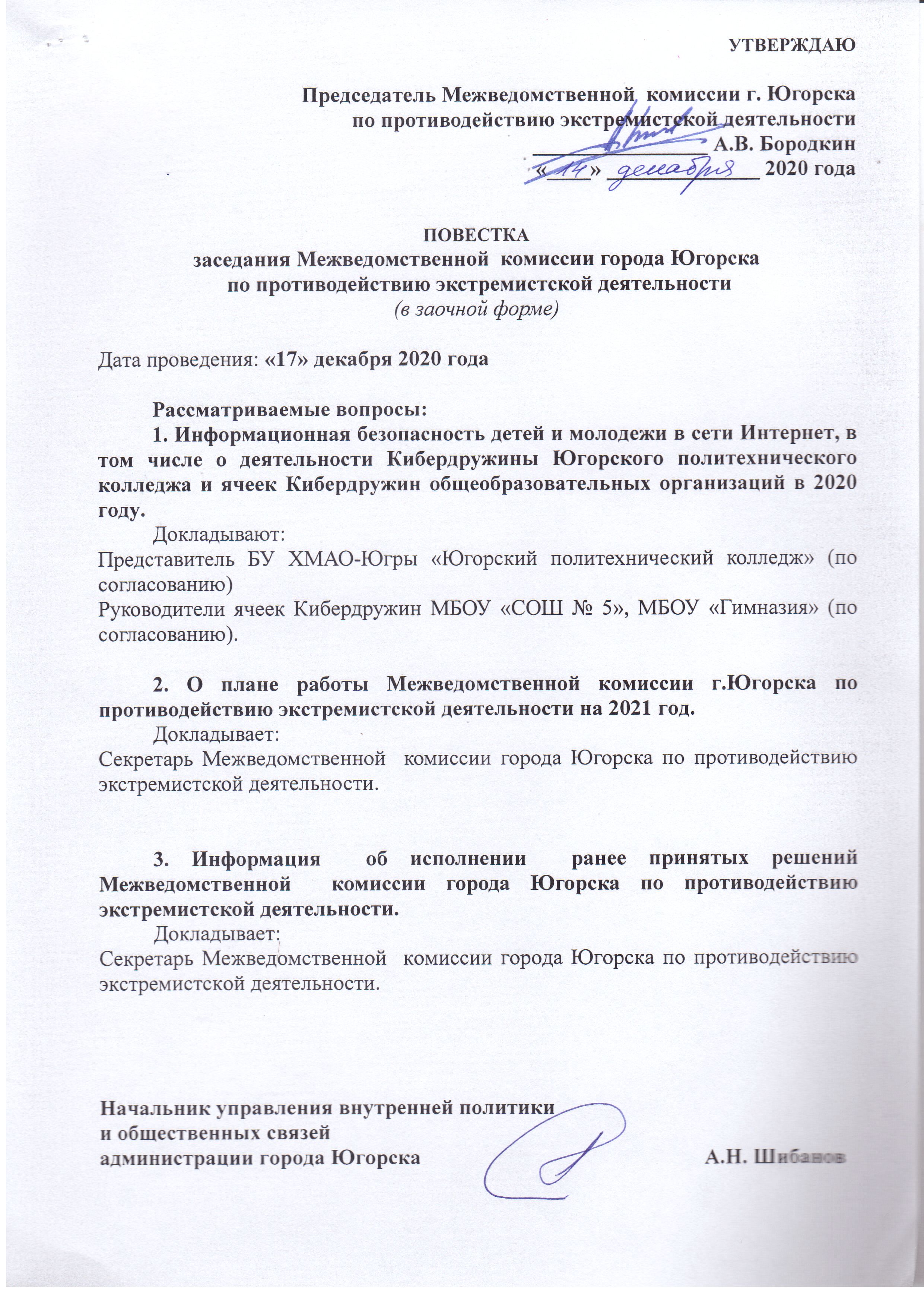 Межведомственная комиссия при администрации города Югорска по противодействию экстремистской деятельности
