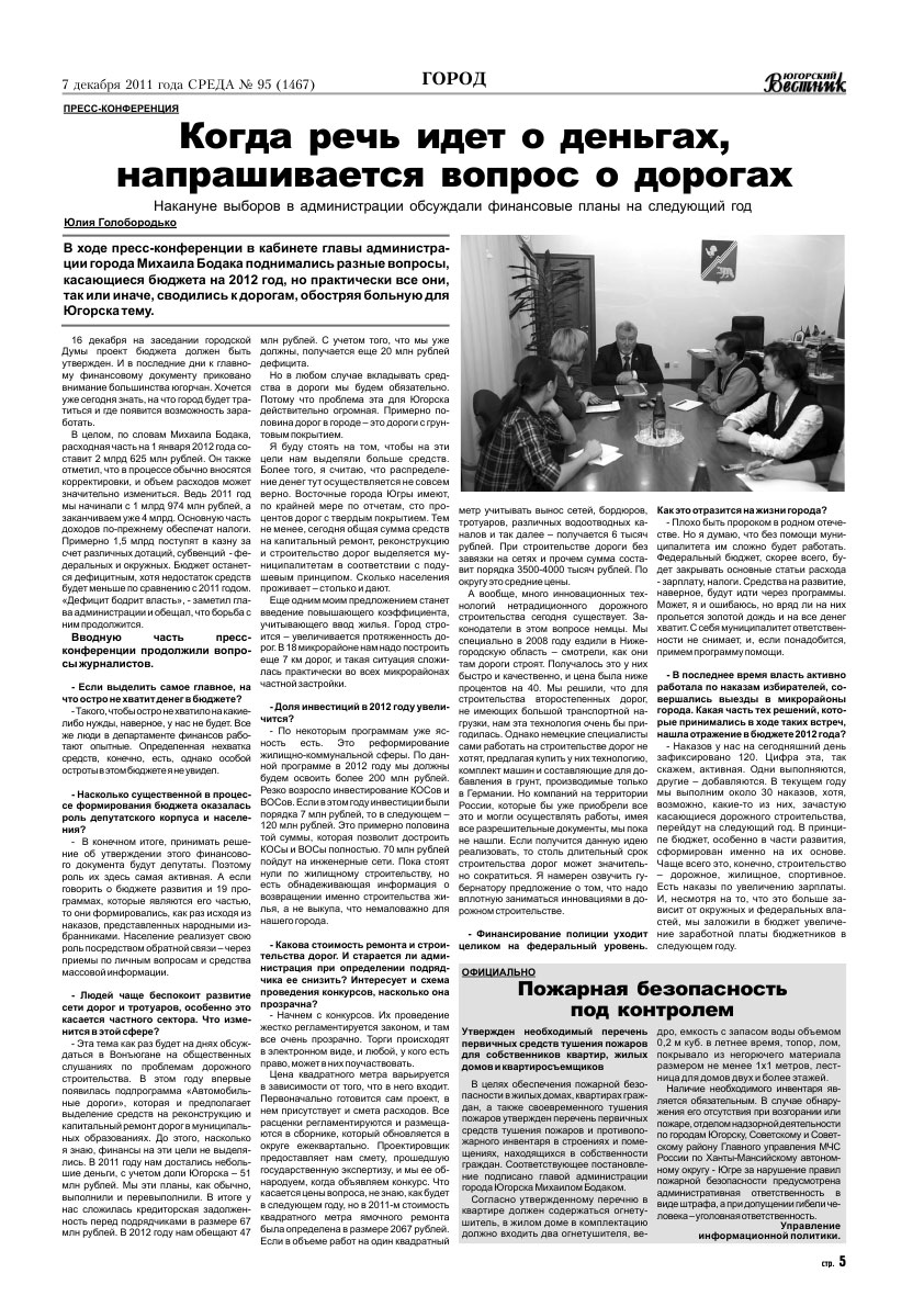 "Югорский вестник" №95 от 07.12.2011